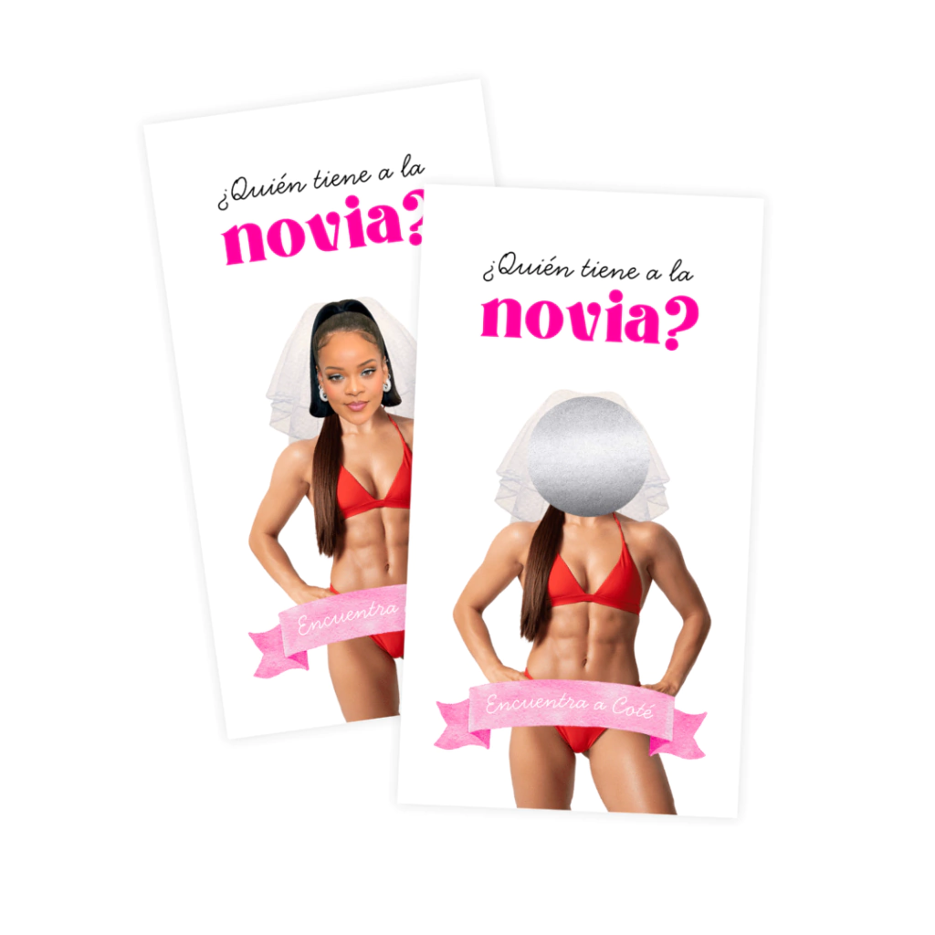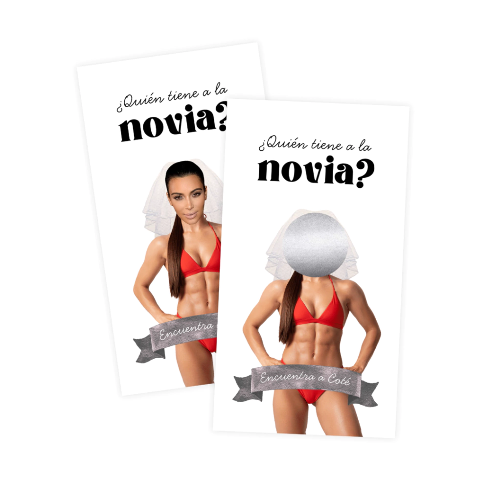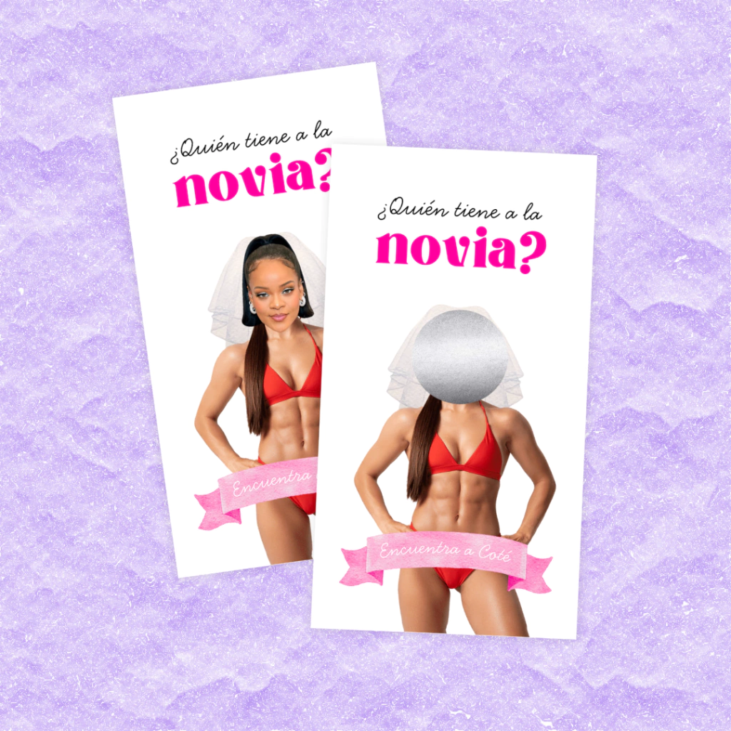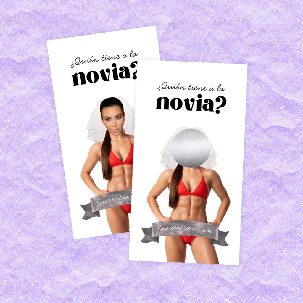 Tarjetas: tarjetas con rostros con distintas famosas y una tarjeta ganadora con la imagen de la novia real.