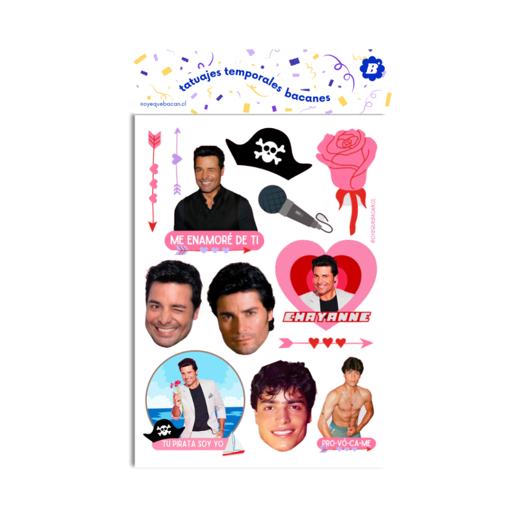 ¡Descubre el Set de tatuajes temporales Chayanne, con diseños únicos y divertidos que harán de tu celebración digna de recuerdo! Perfectos para cualquier ocasión y fáciles de colocar.