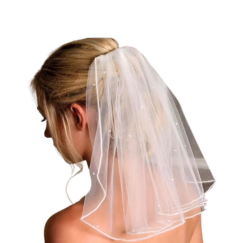 Velo de novia con brillitos, fácil de colocar y muy lindo. Deja que la novia destaque en su día.